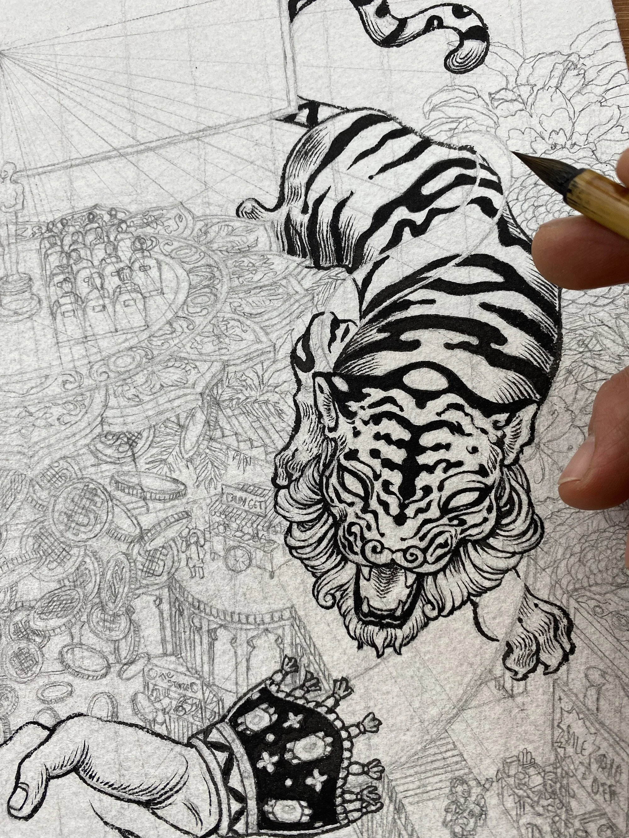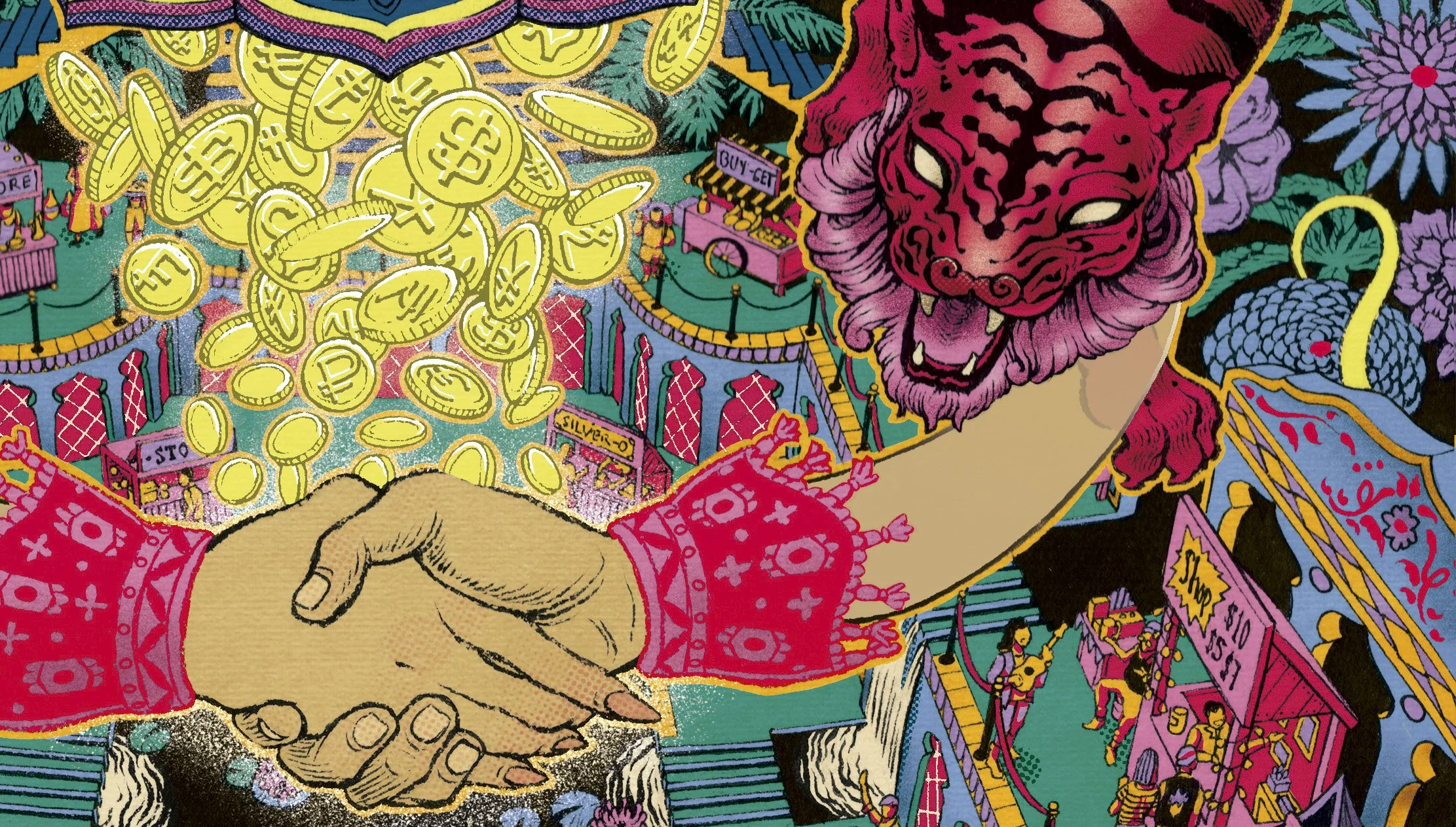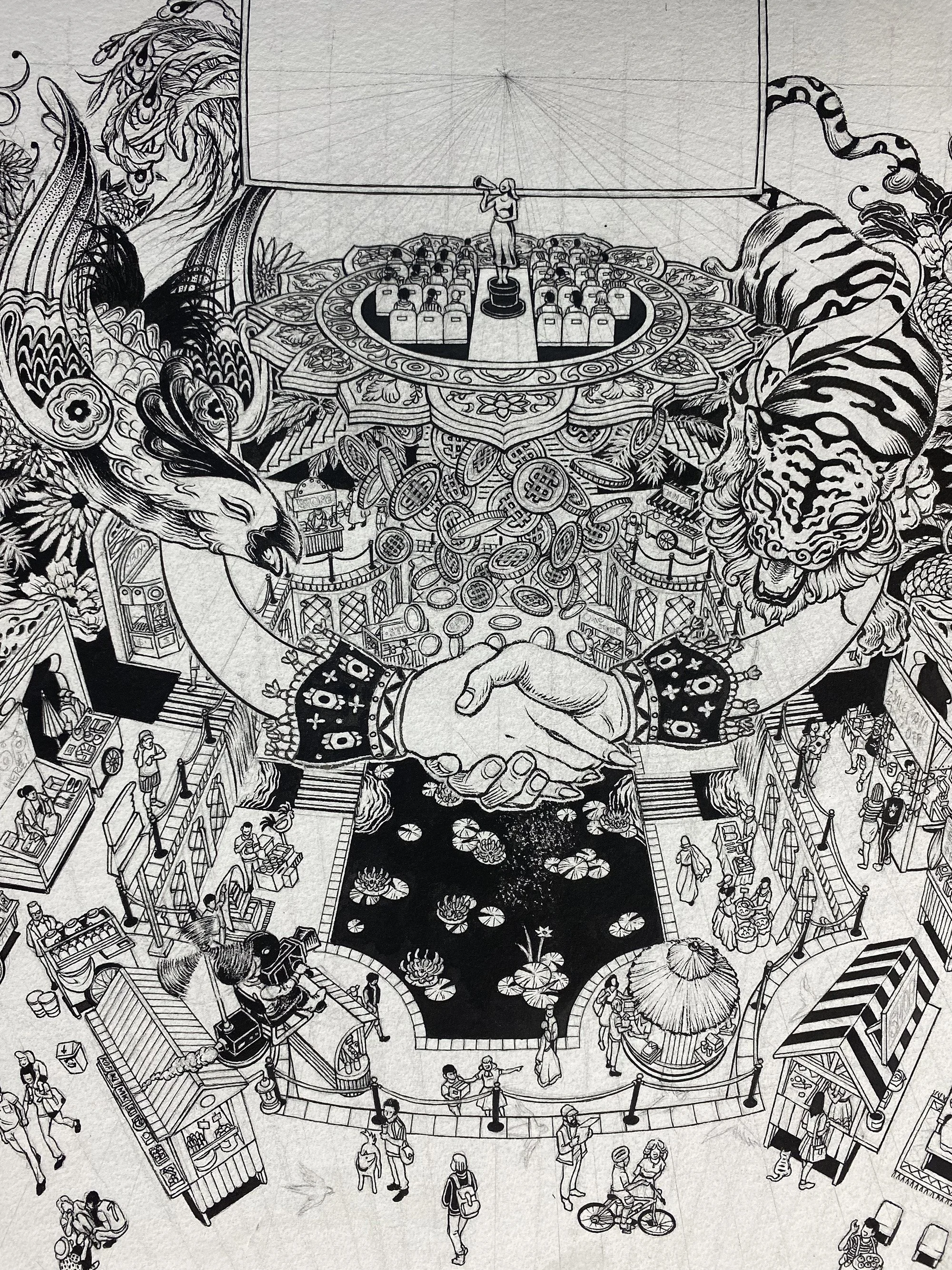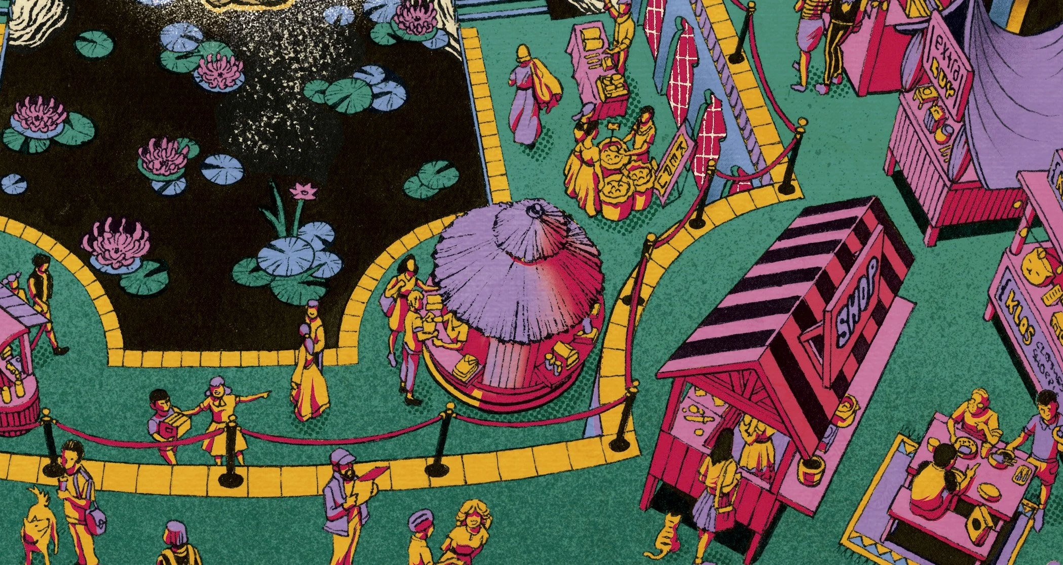 This illustration needed to reflect this concept in a harmonious, dynamic and fun way using representative colours of South Asia.
