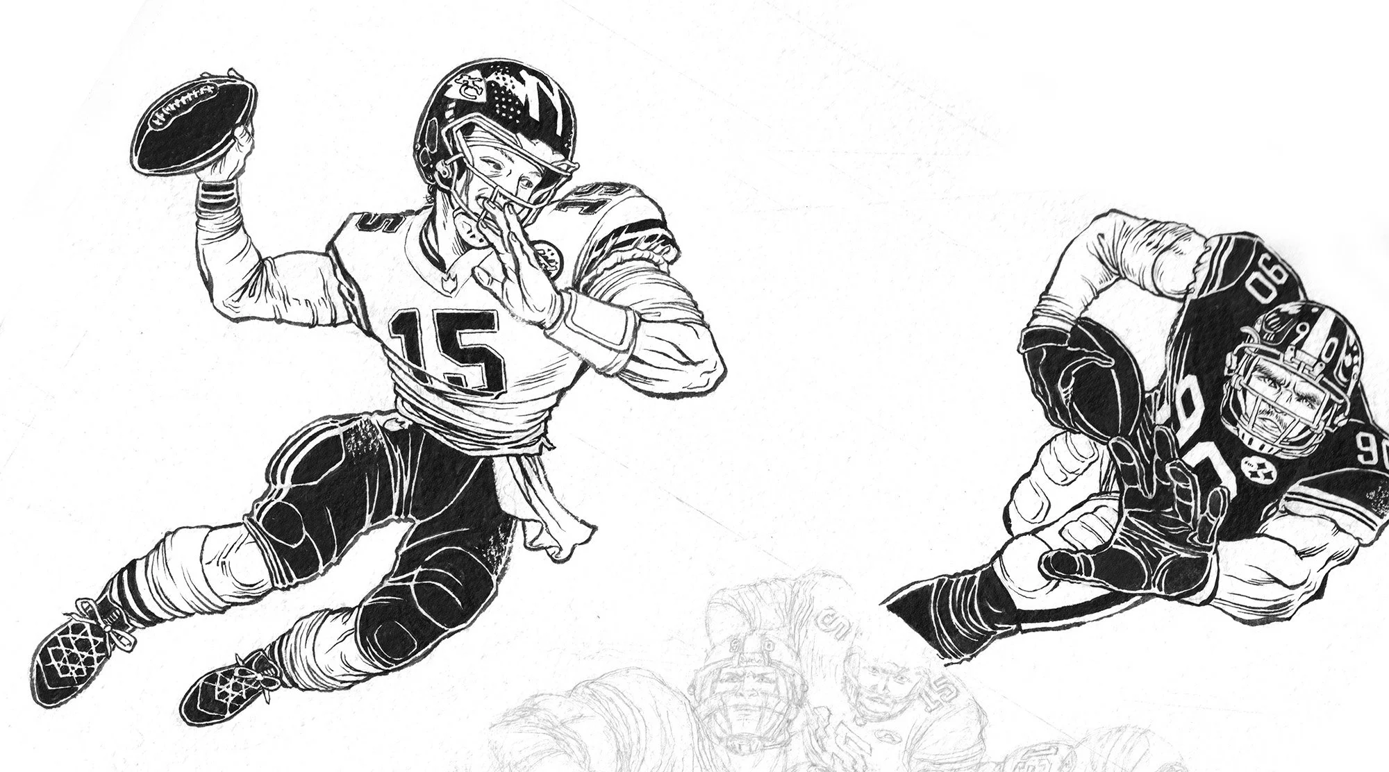 The idea for this illustration, which later was translated as murals, was to create a very striking illustration, where it had to be considered a composition of the league's most representative players to communicate the return of the NFL to ESPN.